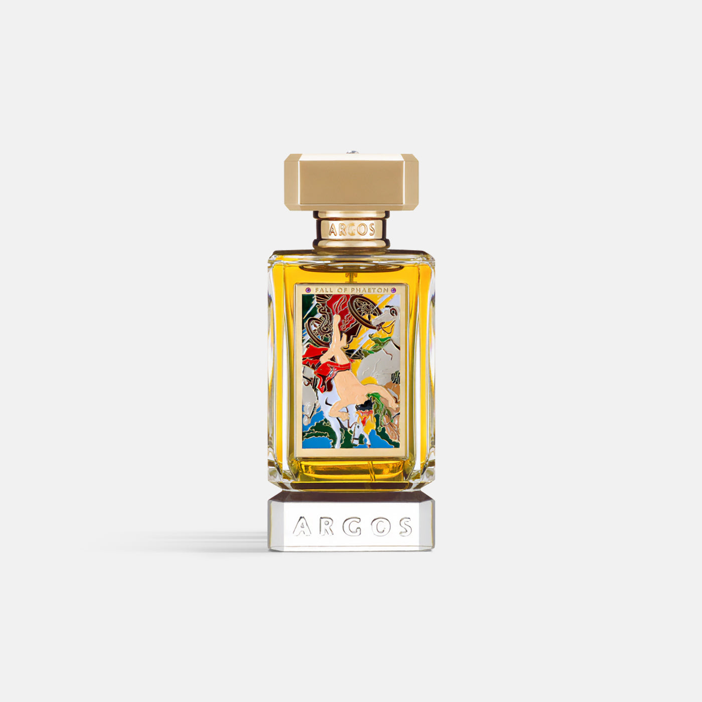 This bold fragrance pays homage to the tragedy of Phaeton, who, although he greatly failed, more greatly he dared. Opening with Lightning Bursts of Bergamot and Lemon, Spicy Cardamom, Pink Peppercorn and Ginger, Argos FALL OF PHAETON transitions into its Smoldering heart notes of Labdanum, Lavender, and Agarwood. Base notes of Rich Musk, Animalic Leather, Sweet Tonka Bean, and Vanilla bring this provocative and chaotic event to life.